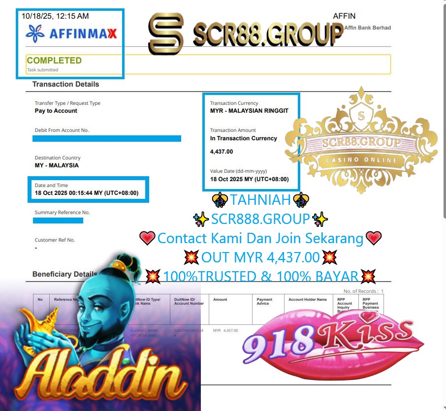 918kiss aladdin in myr 250.00 out myr 4,437.00