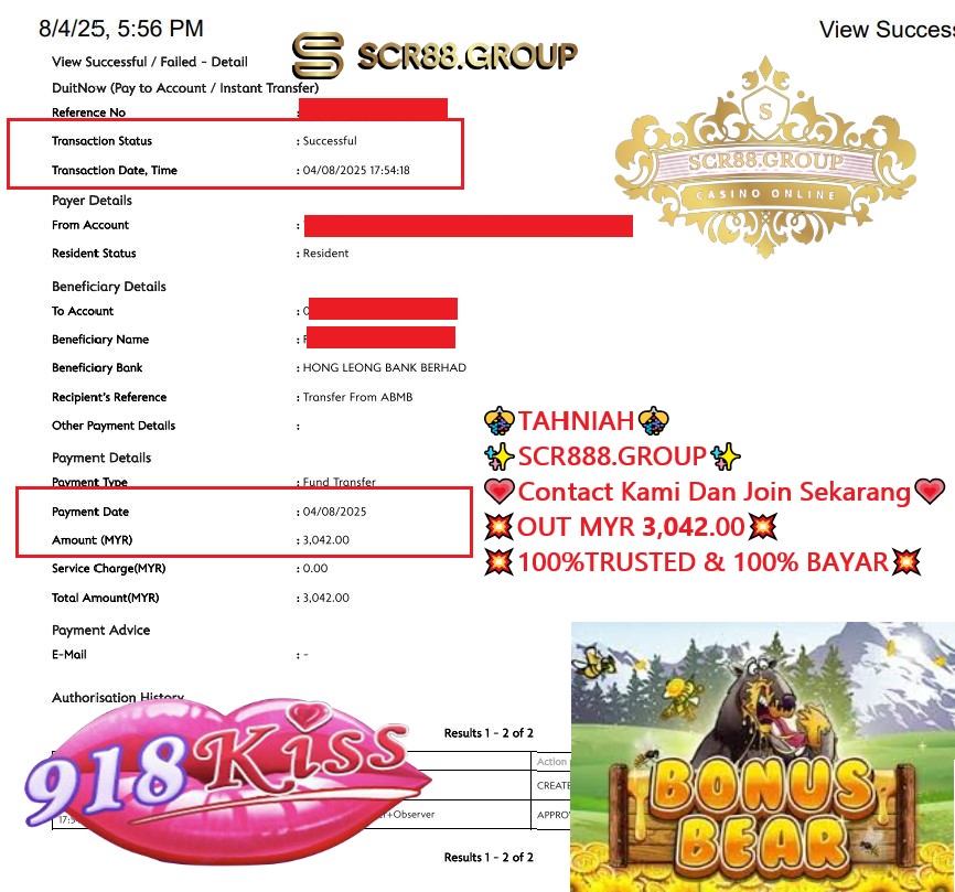 918kiss game bonus bear in myr 50.00 out myr 3,042.00