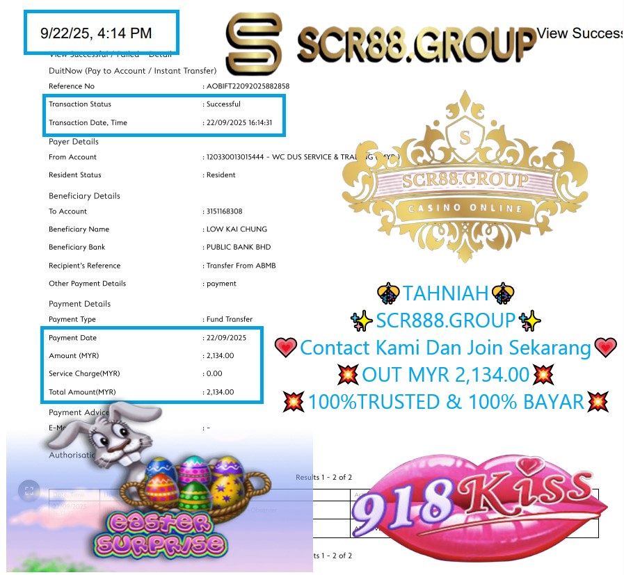 918kiss game easter in myr 100.00 out myr 2,134.00