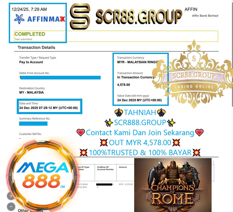 Mega888 game champions of rome in myr 300.00 out myr 4,578.00