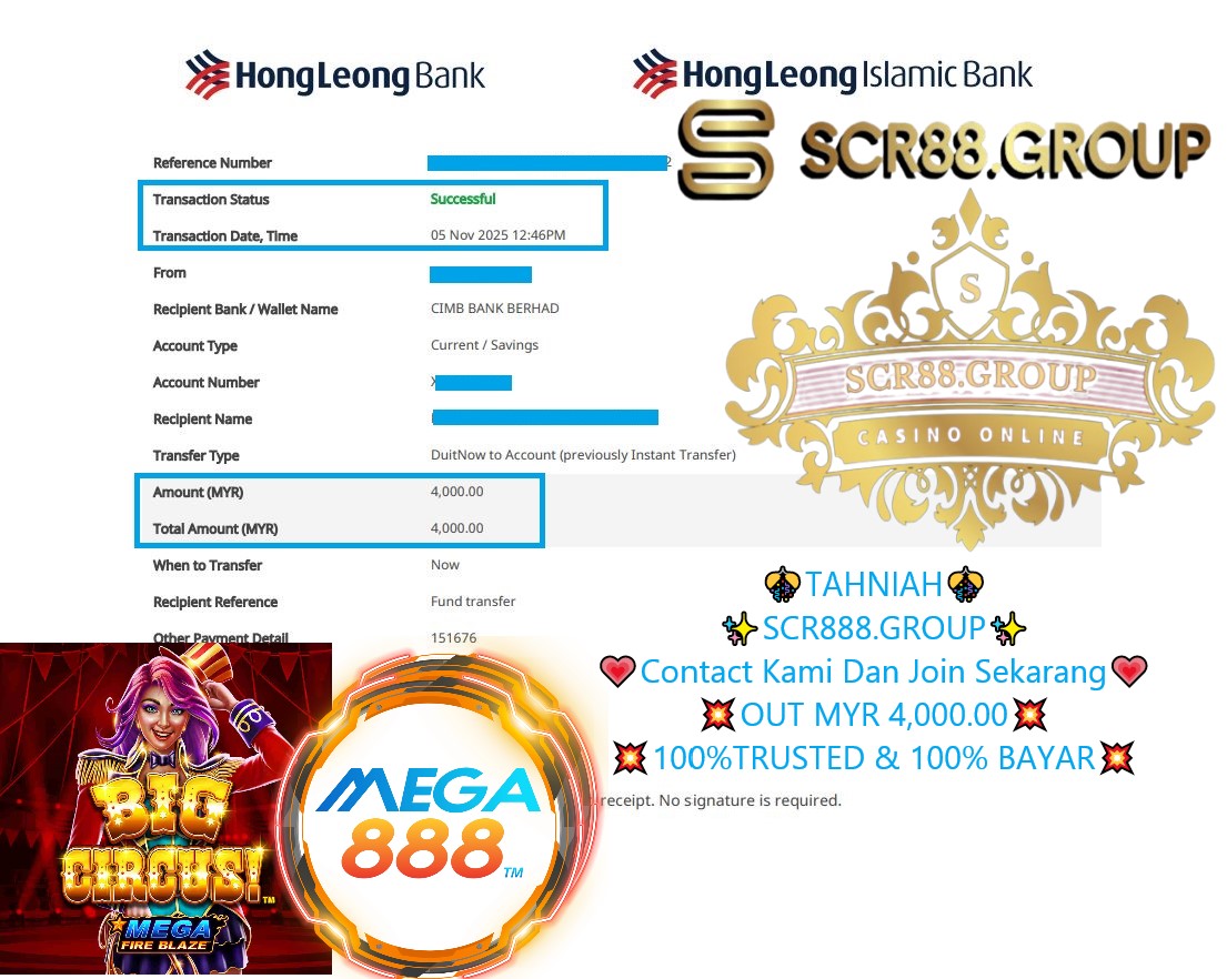 Mega888 game circus in myr 500.00 out myr 4,000.00