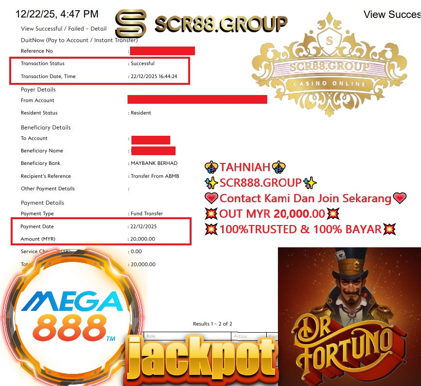 Mega888 game dr fortuno in myr 500.00 out myr 20,000.00