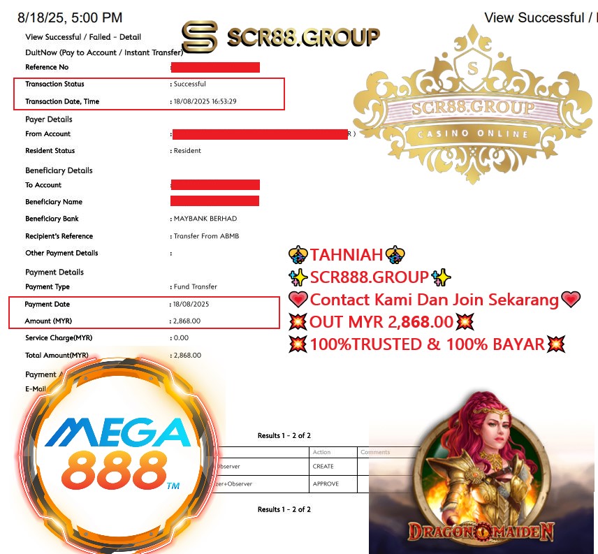 Mega888 game dragon maiden in myr 200.00 out myr 2,868.00