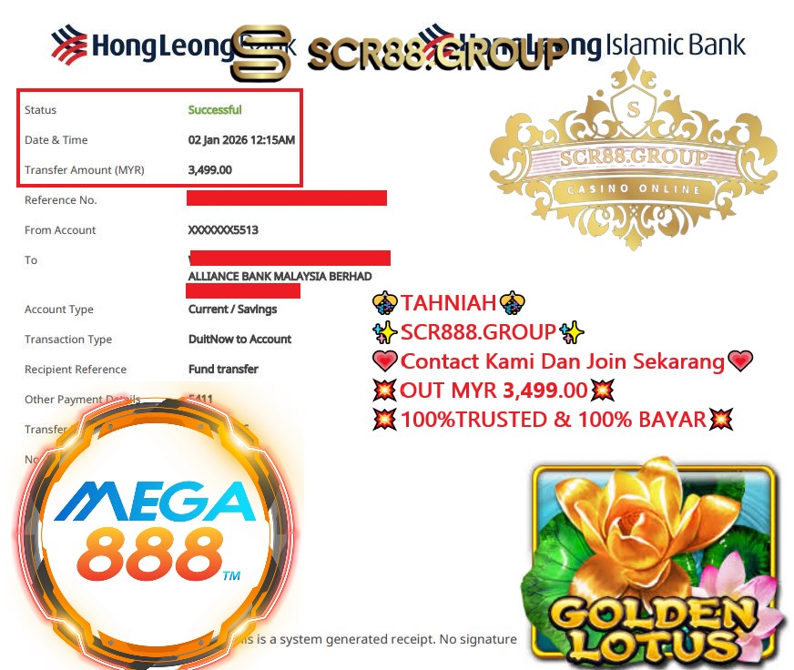 Mega888 game golden lotus in myr 500.00 out myr 3.499.00