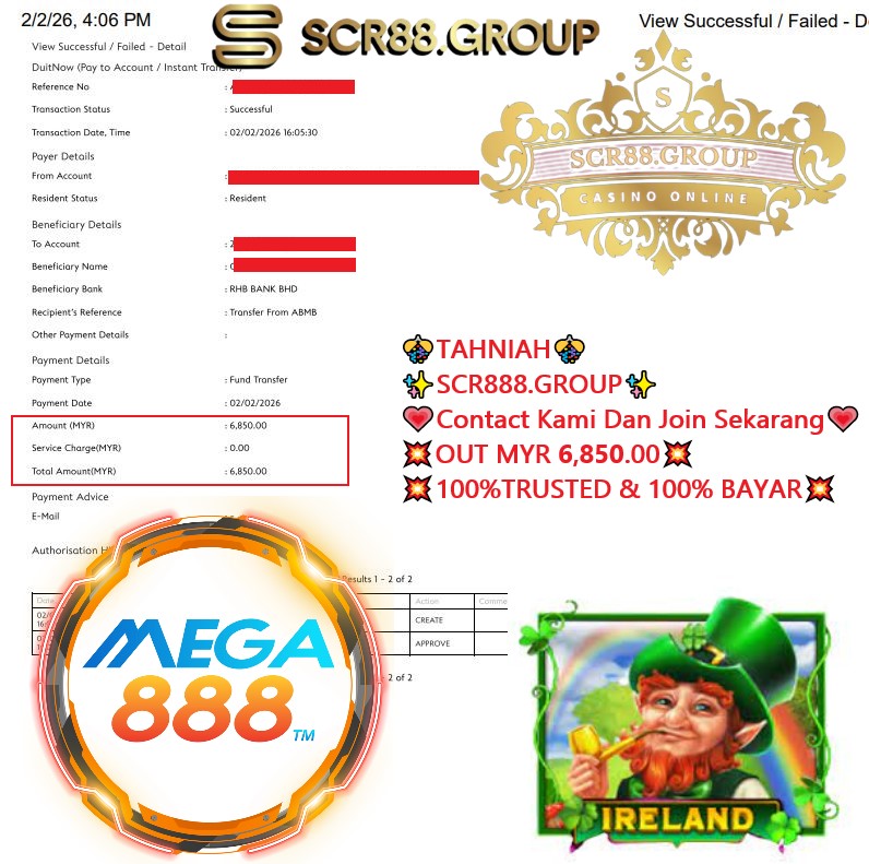 Mega888 game ireland in myr 200.00 out myr 6,685.00
