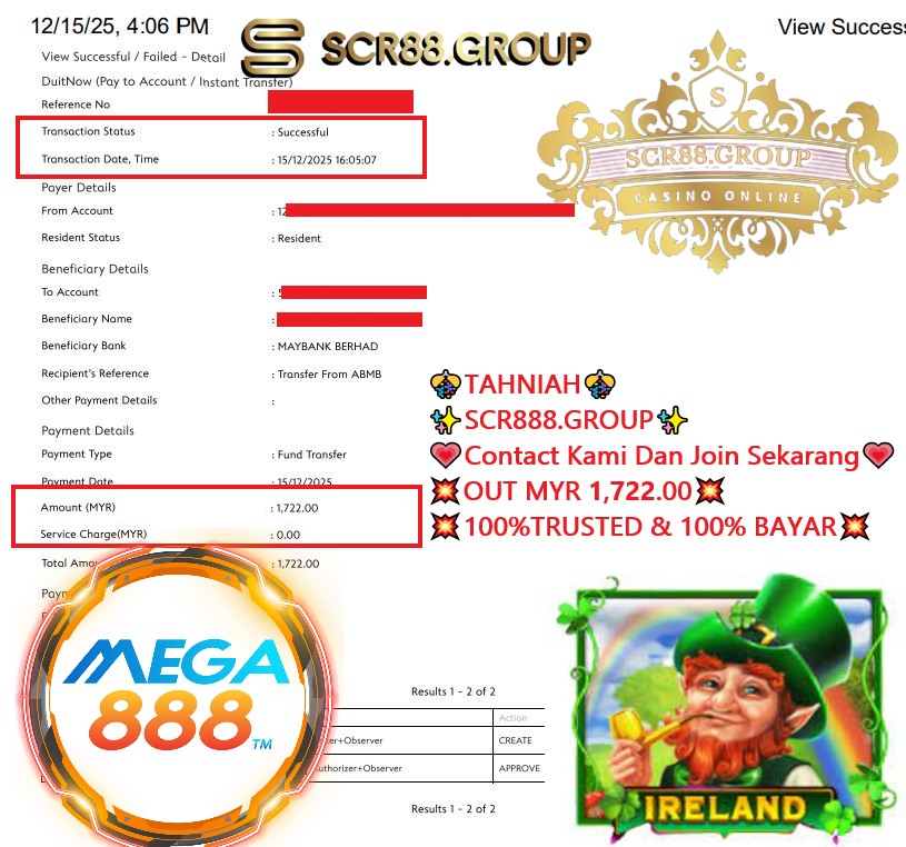 Mega888 game ireland in myr 50.00 out myr 1,722.00