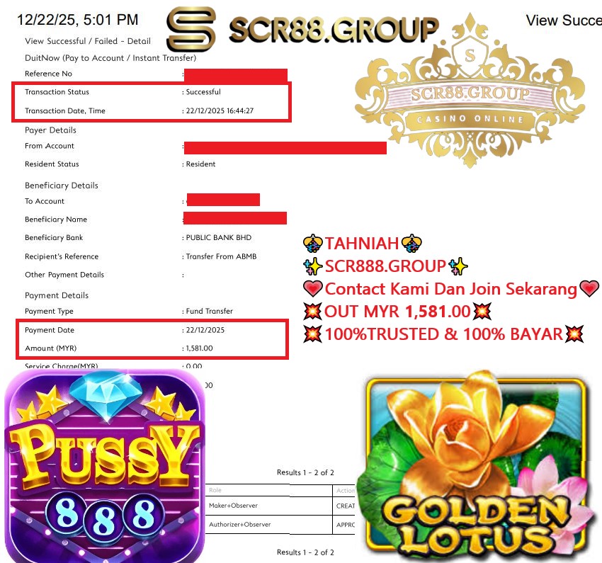 Pussy888 game golden lotus in myr 50.00 out myr 1,581.00