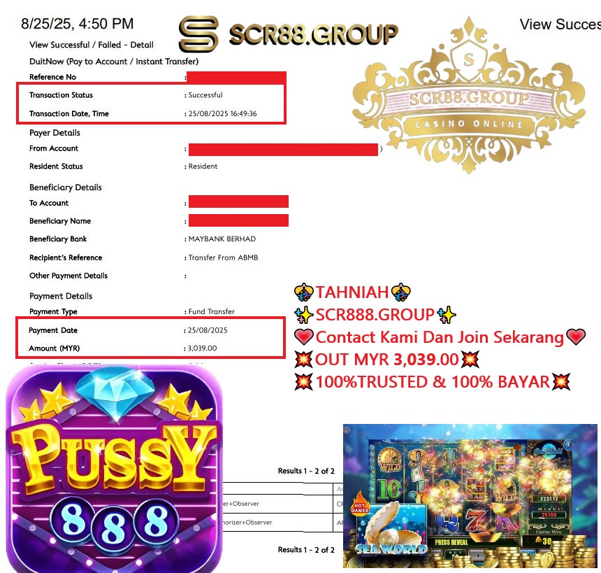 Pussy888 game seaworld in myr 100.00 out myr 3,039.00