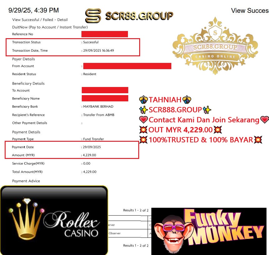Rollex11 game funky monky in myr 300.00 out myr 4,229.00